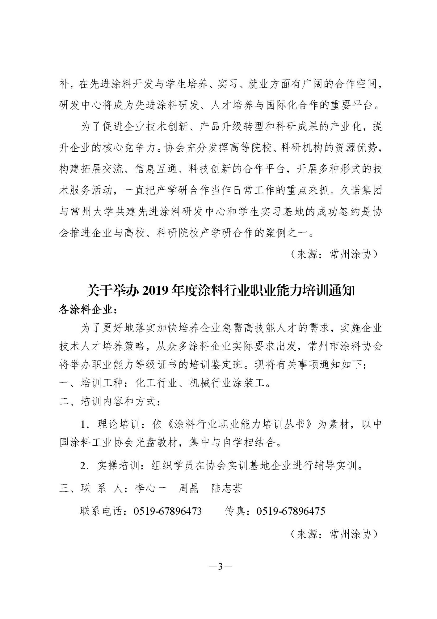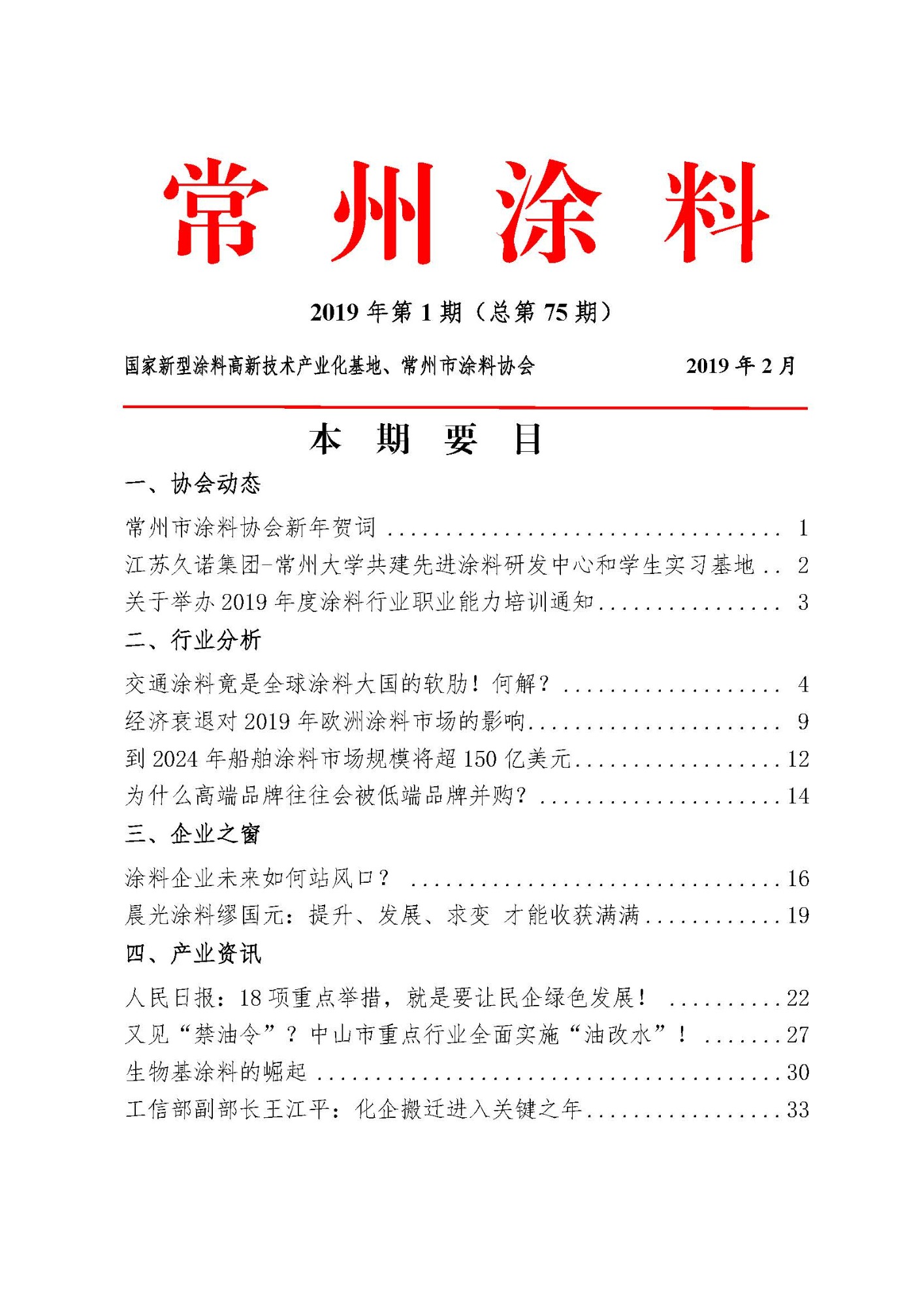 常州涂料簡報2019年第1期(總第75期)