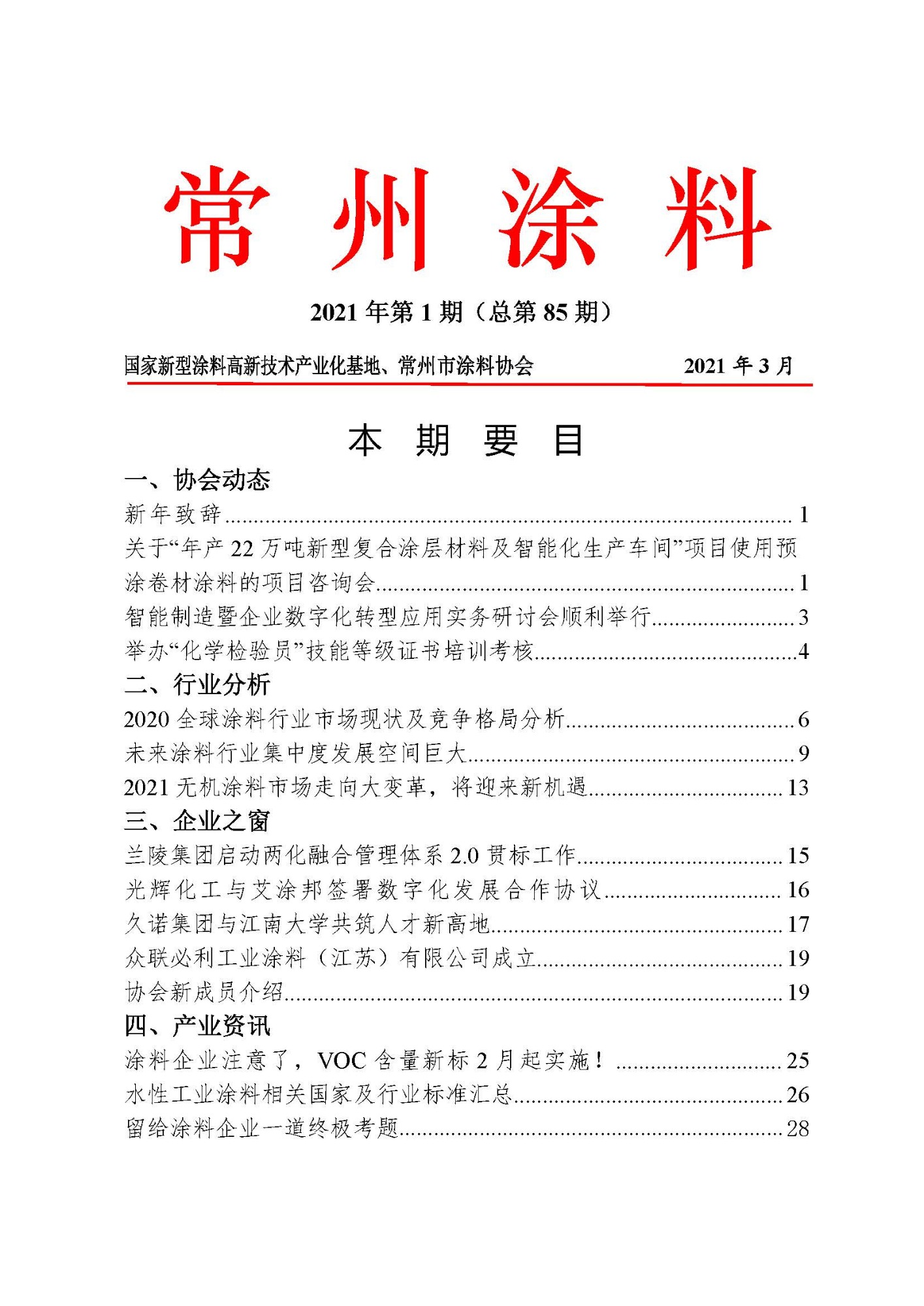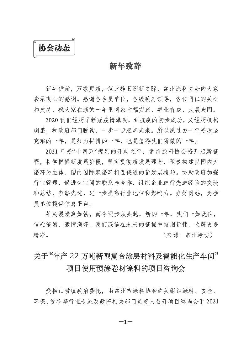 常州涂料簡(jiǎn)報(bào)2021年第1期(總第85期)