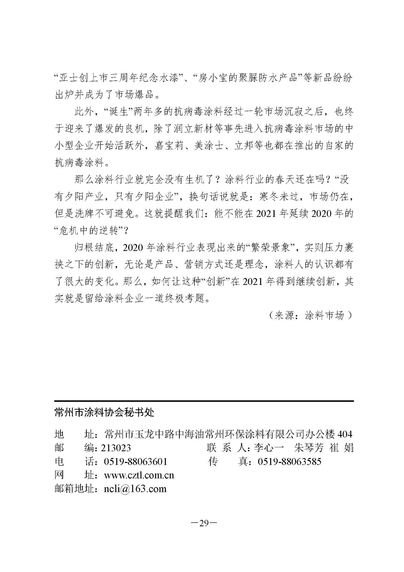 : 常州涂料簡(jiǎn)報(bào)2020年第4期(總第84期)